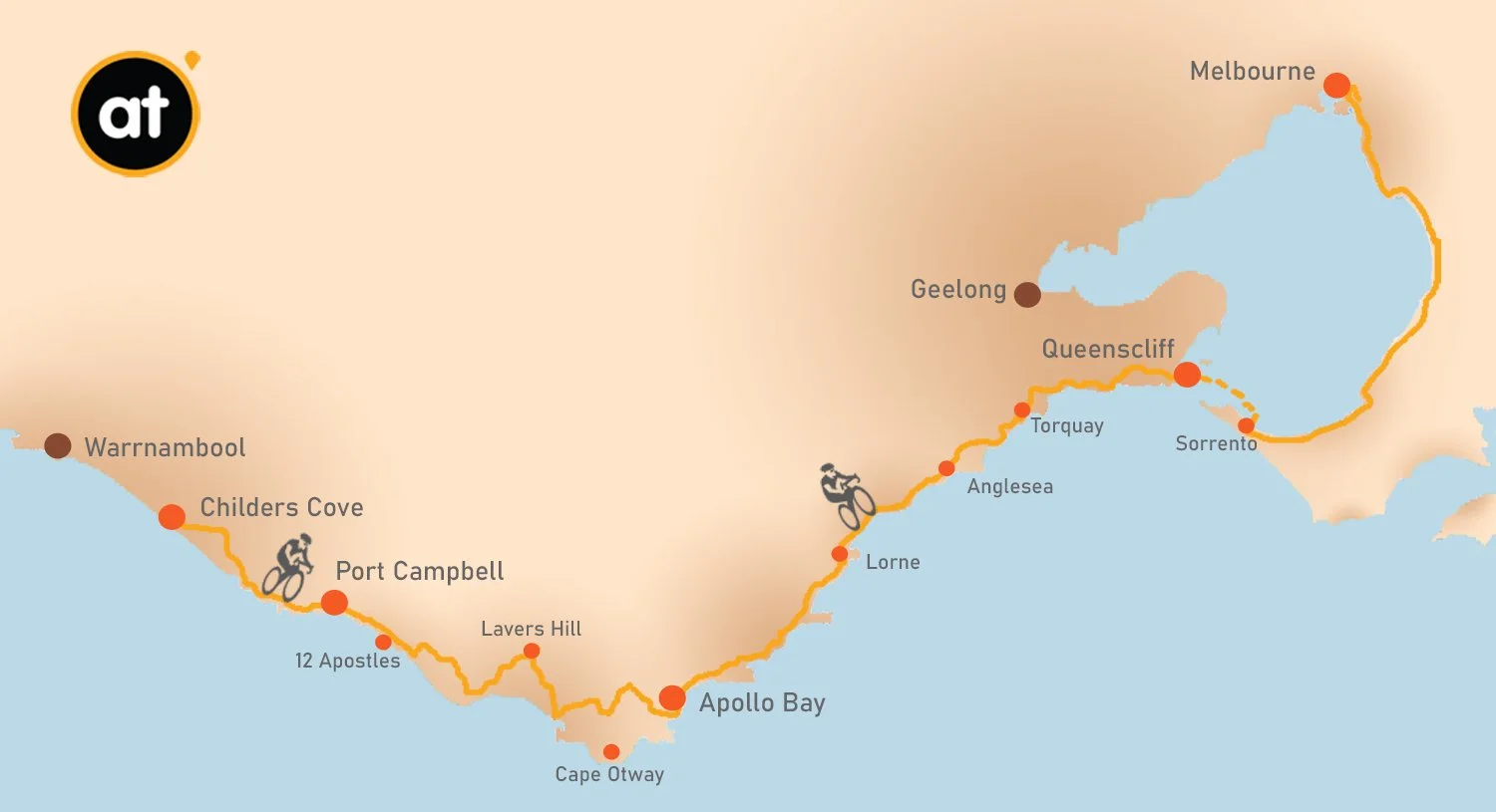 Great Ocean Road - Cycle Tour Route (Childers Cove to Melbourne)
