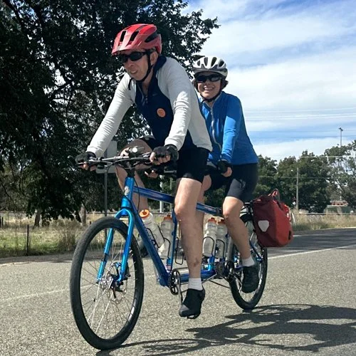 Favourite ride days: Myrtleford to Milawa - A perfect gradient for a tandem and the road provided smooth conditions and the opportunity to get into a consistent riding rhythm. Also the day from Beechworth to Stanley to Myrtleford - The morning climb to the orchards of Stanley and then an exciting downhill. The straight downhill on the road after morning tea (before the rail trail section) was even better as the sight lines gave confidence to really enjoy the available speed. I also enjoyed the Murray River scenery on the ride from Corowa to Yarrawonga and back. Appreciated the continual focus of the Alltrails team on the group’s safety and enjoyment, ensuring the logistics went smoothly and the attention to detail e.g. the little things like the metal name badges, the plastic sleeve to keep our maps in, the name tag for luggage, completion certificate and the coins for laundry machines. It is clear that the team learns from past trips and makes adjustments. The foldable seats and the slice provided by Jo was a lovely home touch at morning tea. The sag wagon keeping a watchful but not too close distance was also appreciated.